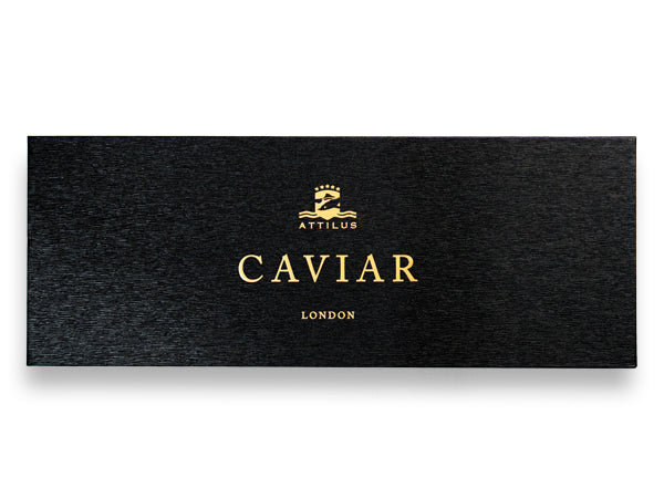 This caviar set is presented in an elegant, specifically designed exclusive Attilus Gift Box with four tins of caviar from our selection, as well as a Mother-of-pearl spoon and a caviar tin opener. The set is available for 50g tins only.